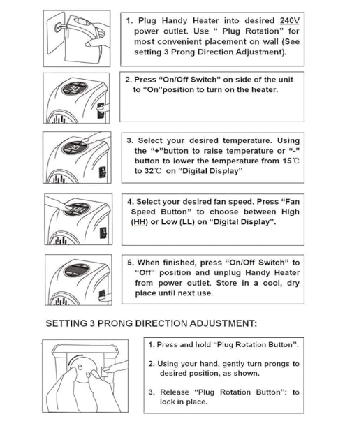 Product Description: Plug-in Electric 400 Watts Handy Room Heater Package Contains: It has 1 Piece of Room Heater Material: Plastic Dimension: 16 x 10 x 18 Weight: 546gm Additional Information: The Wall Outlet Space Heater, Air Warmer Blower Adjustable Timer Digital Display for Office Easy to use: This fan heater is simple to utilize. Just find a plug, plug it and set the temperature. Portable heater: Electric Handy Heater is potable. You can use it in rooms, bathroom and take it to outside of your house.